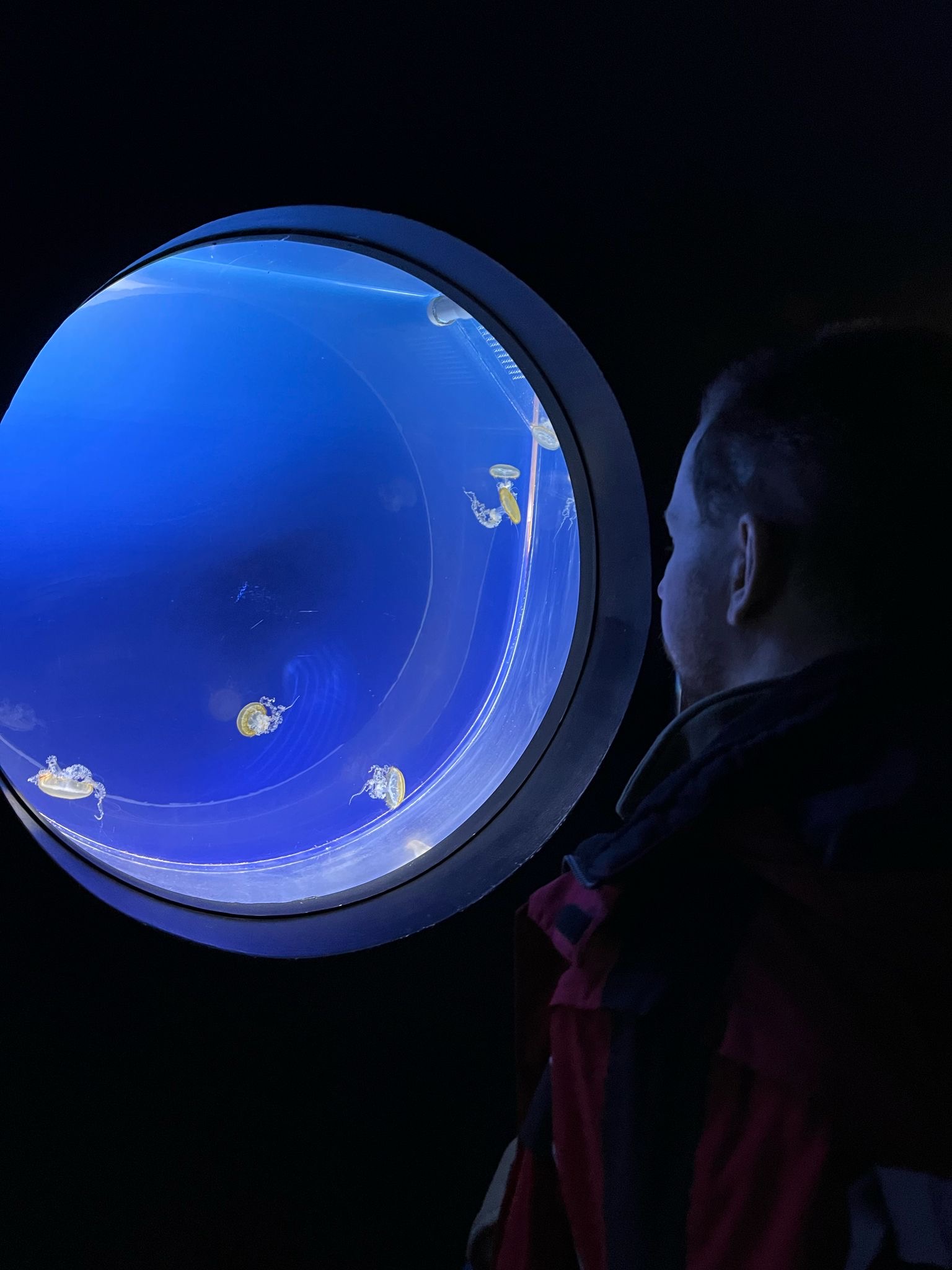 Uživatelé pobytové sociální služby DOZP VH, p. s. s. navštívili obchodní centrum Arkády Pankrác v Praze, kde zhlédli expozici medúz. Výlet do Prahy za novými zážitky se uživatelům moc líbil. Fotografie zachycují uživatele v prostorách expozice.