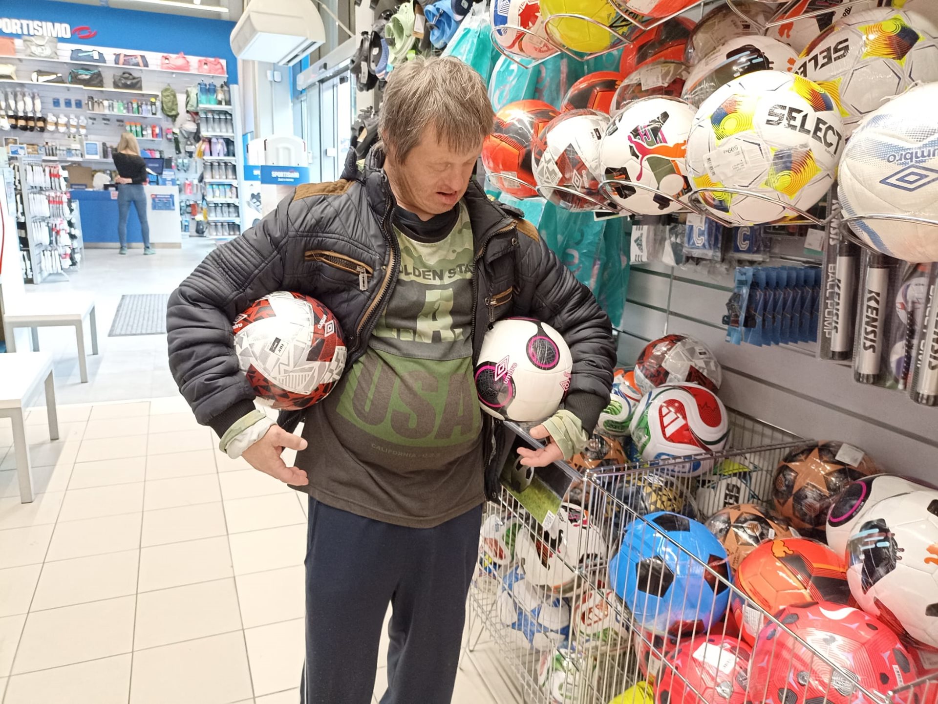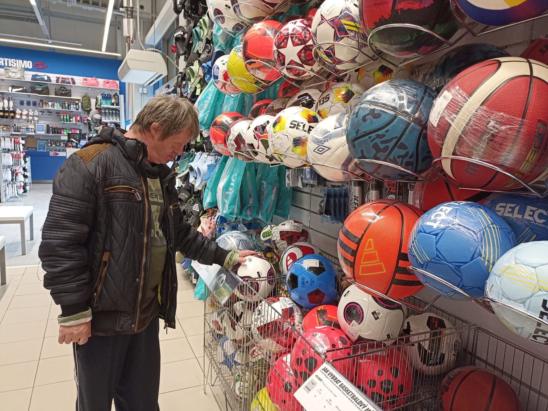 Uživatel služby CHB v Neratovicích Zdeněk má velmi rád sport - zejména fotbal, proto si přál zakoupit svůj vlastní kvalitní míč. S klíčovým pracovníkem zavítal do sportovních potřeb na Mělníku, kde výběr řádně zvažoval, aby si koupil a vybral ten správný míč. Zvažování vyústilo v přání si koupit míče oba dva